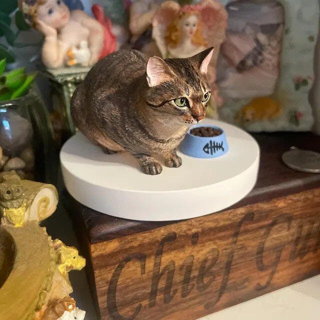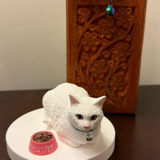 Celebrate the love and memories with a fully customized pet sculpture, handcrafted with attention to every detail. Our process starts by selecting the perfect pose for your pet from our collection of professional molds. Then, a skilled artist meticulously paints your pet's fur patterns, colors, and expressions, ensuring a true-to-life resemblance.